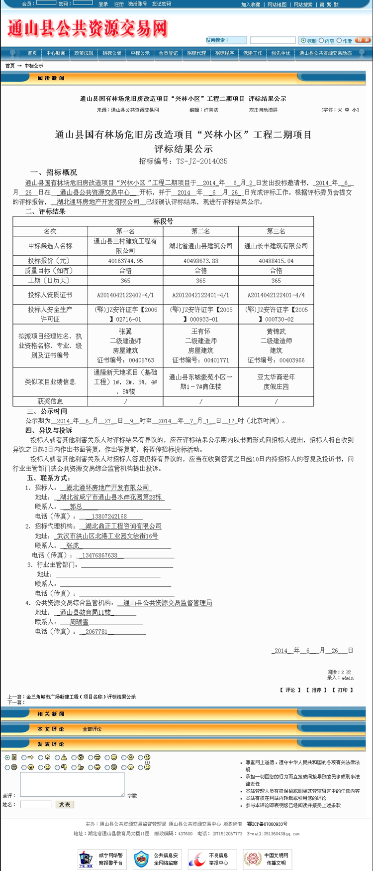 中標公示