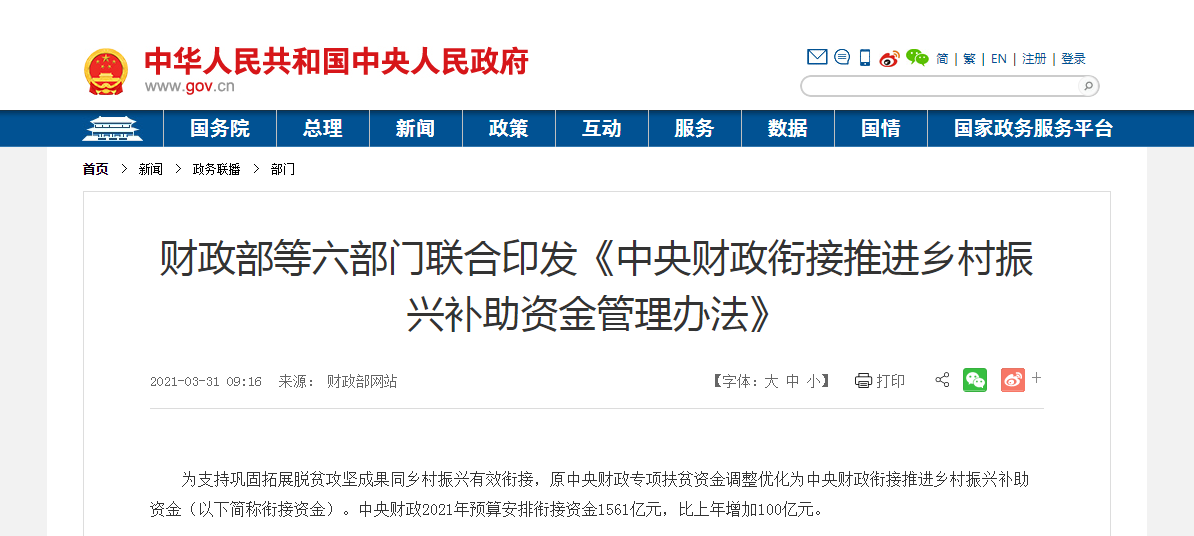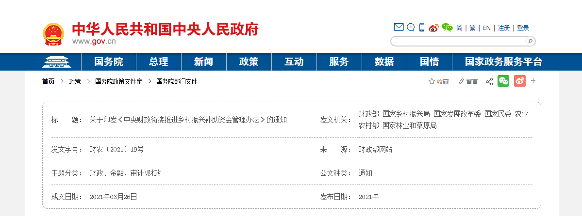 中央財(cái)政銜接推進(jìn)鄉(xiāng)村振興補(bǔ)助資金管理辦法