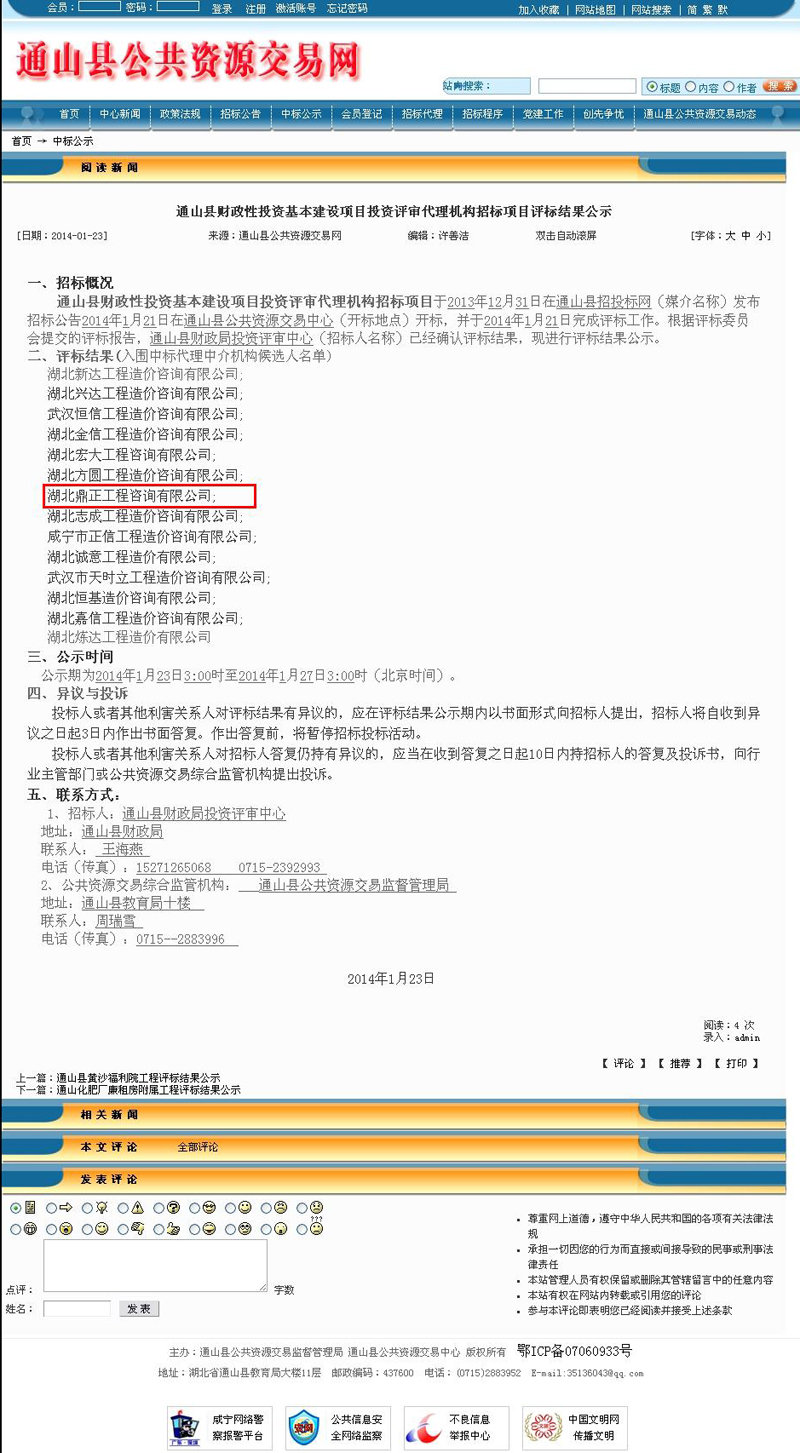 我公司入圍通山縣財政性投資基本建設(shè)項目投資評審代理機構(gòu)候選名單