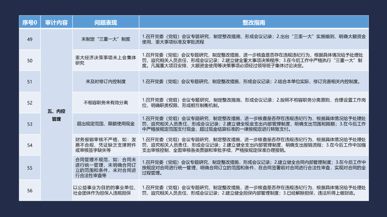 《整改指南100條》將根據(jù)國家和省有關(guān)審計整改標(biāo)準(zhǔn)規(guī)定精神適時進(jìn)行修訂。