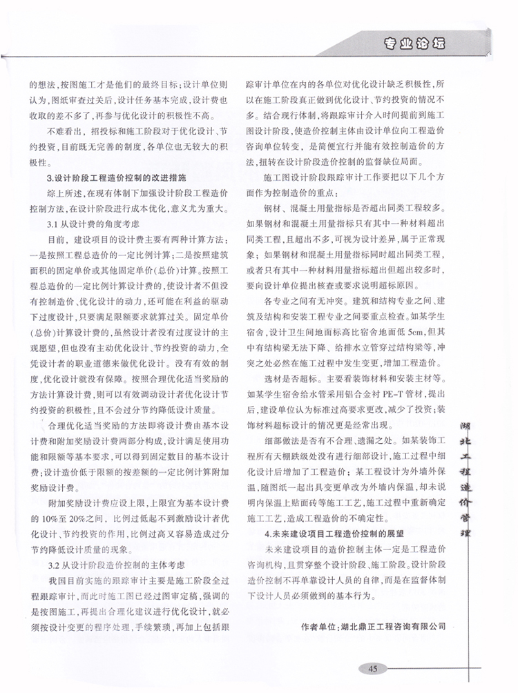 祝賀我司李光洲同志所著文章《淺談建設(shè)項(xiàng)目在設(shè)計(jì)階段的造價(jià)控制》在全國(guó)工程造價(jià)管理類優(yōu)秀期刊《湖北工程造價(jià)管理》2014年第4期“專業(yè)論壇”板塊發(fā)表。