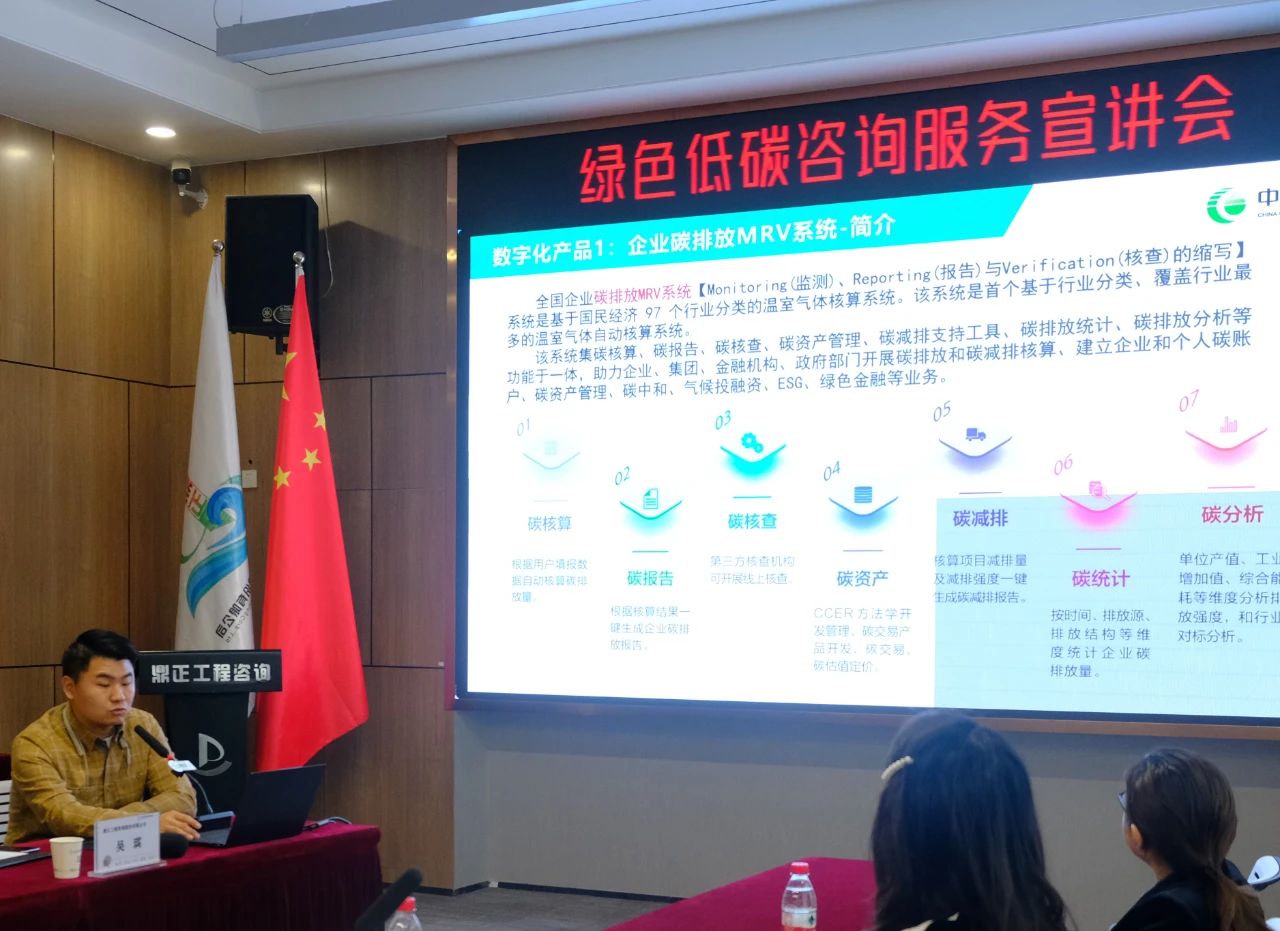 產業與空間規劃事業部吳琪,結合公司在工程領域的雙碳研究成果和大量工程實踐經驗,從政策背景、核心優勢、業務內容三個方面,全面而細致地介紹了《鼎正綠色低碳咨詢服務產品矩陣》。
