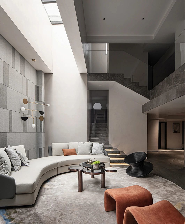 燈光對室內色彩的影響,也是設計師需要考慮的重要因素。燈光的亮度、色溫、顯色度都直接影響著室內色彩的最終視覺表現。暖光配暖色顯得溫馨;暖光配冷色或者冷光配暖色會形成一定的色彩對比產生視覺沖擊感;冷光配冷色會顯得幽靜深遠,具有未來科技感。
