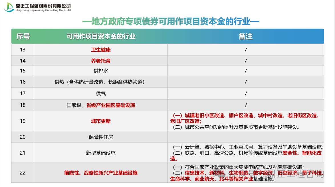 (2)資金投向:精準匹配專項債券可用作項目資本金的行業,或項目未納入“負面清單”。