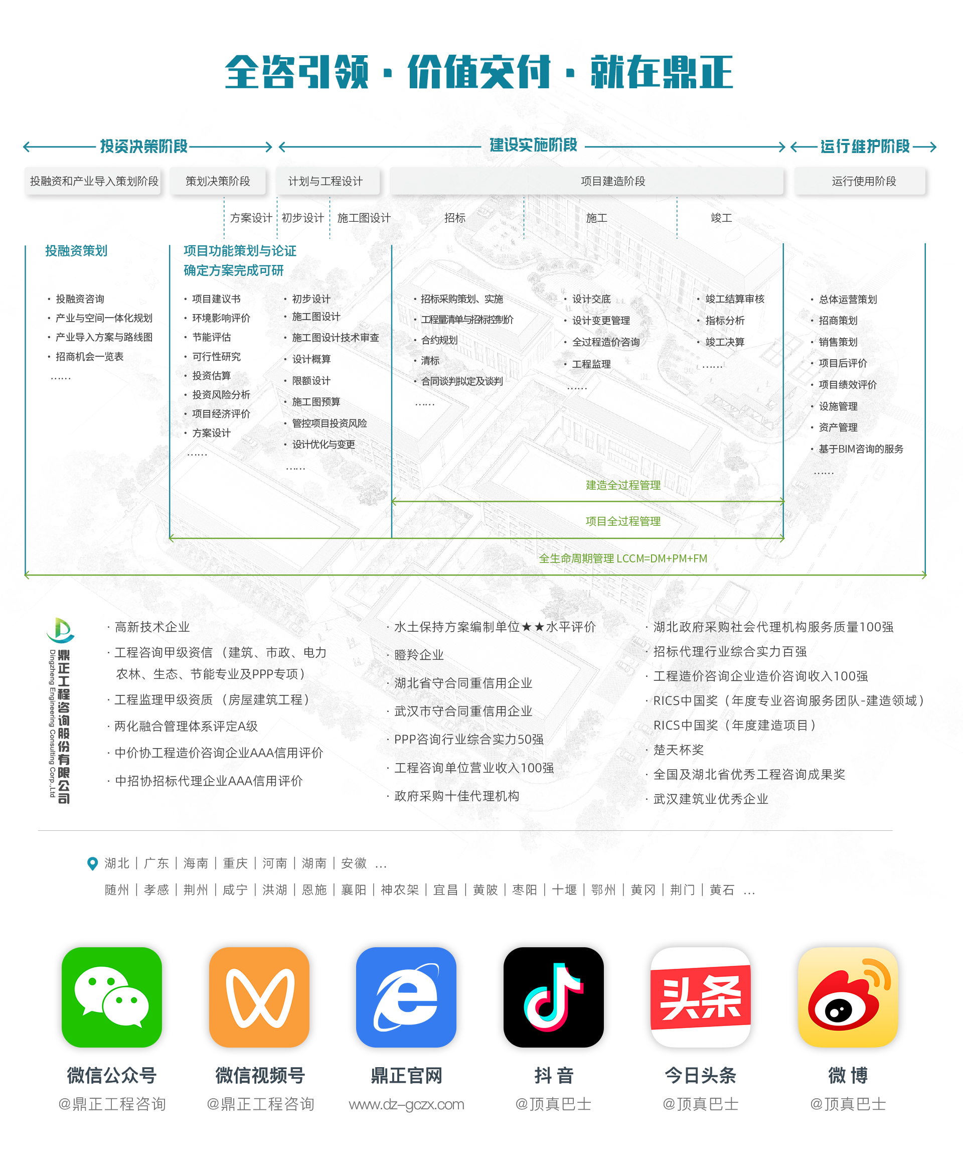 鄉村運營是一個系統工程,涉及政策、市場、管理、創新模式等多個方面,需要政府、企業和社會各界的共同努力,以實現鄉村的可持續發展和全面振興。鼎正多年來深耕于鄉村振興、產業發展、投融資等領域,以發展全過程全方位全領域綜合咨詢為戰略目標,致力于成為地方政府發展的高端智庫。未來將持續聚焦于鄉村運營領域,圍繞鄉村空間布局優化、產業融合發展、閑置資產盤活、鄉村運營人才培養、生態綠色低碳等板塊重點發力,為鄉村運營發展貢獻鼎正力量。