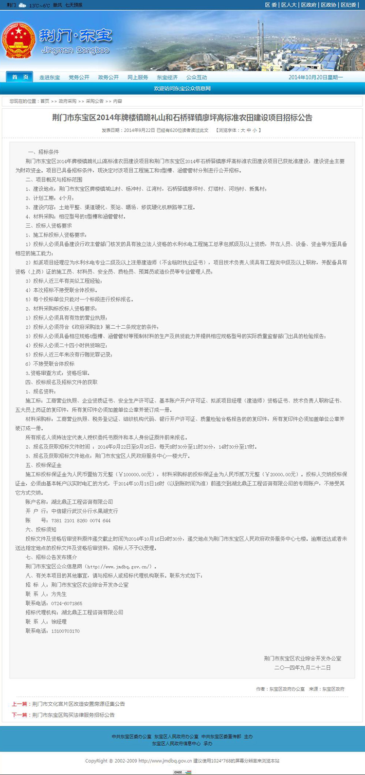 荊門市東寶區(qū)2014年牌樓鎮(zhèn)跪禮山和石橋驛鎮(zhèn)廖坪高標(biāo)準(zhǔn)農(nóng)田建設(shè)項(xiàng)目
