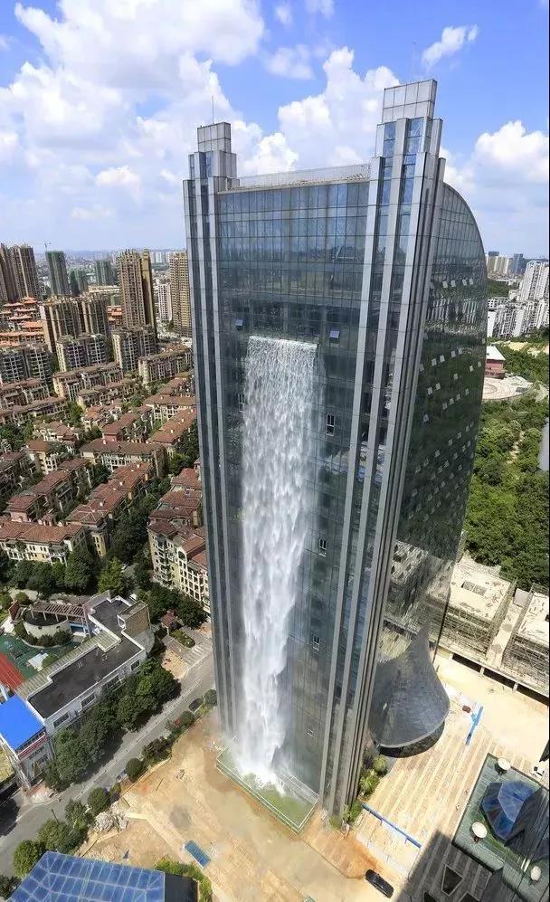 據大廈相關負責人介紹,這是烈變廣場設計的一個景觀瀑布,樓層總高有121米,瀑布設計高度為108米,現在是貴陽市唯一的瀑布大廈,在瀑布正下方,是一個大型的蓄水池,瀑布用的水平時就儲存在水池里。