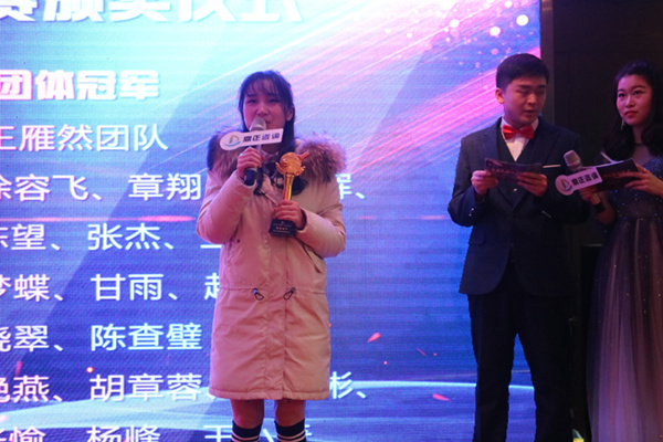 ▲副總毛迎霞為團體冠軍頒獎,胡章蓉代表發(fā)言