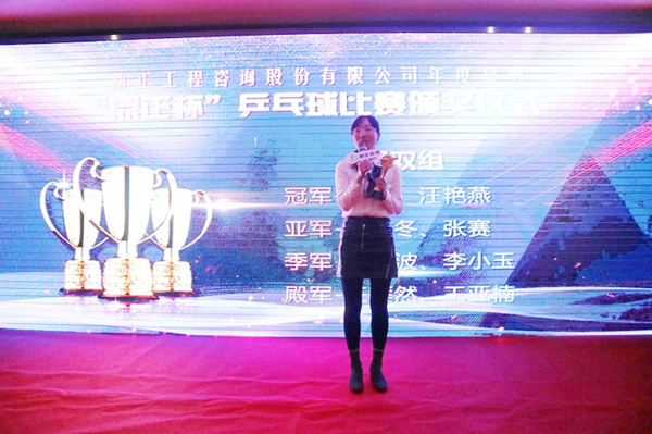 隨后,頒獎典禮正式開始。首先進行的是鼎正咨詢歷屆傳統(tǒng)環(huán)節(jié)第七屆“鼎正杯”乒乓球比賽頒獎儀式。鼎正運動健兒們在本屆乒乓球比賽中盡情揮灑著激情與汗水,充分展現了鼎正人團結向上、自強不息的精神風貌。