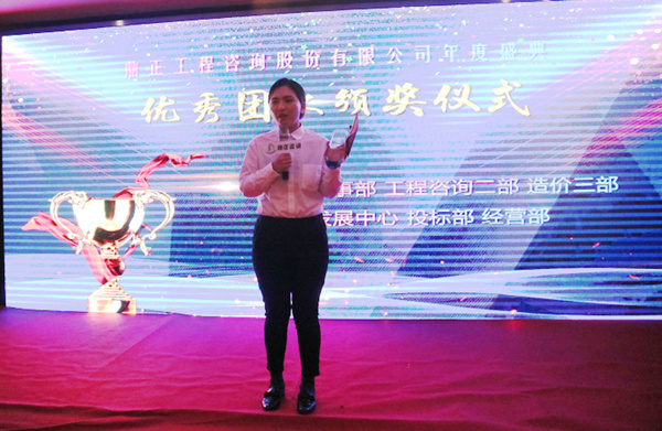 ▲董事長王雁然頒發(fā)優(yōu)秀團隊獎,張賽代表發(fā)言