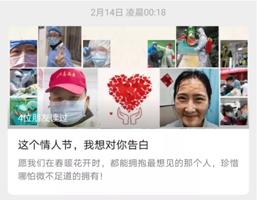 2月14日情人節(jié),我們向全國(guó)各地奮戰(zhàn)在一線從未后退的醫(yī)護(hù)工作者、各條戰(zhàn)線上的志愿者、堅(jiān)守崗位的工作者們告白。希望通過(guò)這篇短文傳遞的正能量,牽動(dòng)我們把更多的大愛(ài)之心傳播到社會(huì)的每一個(gè)角落。