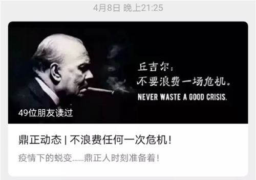 在疫情爆發(fā)之始,鼎正公司領(lǐng)導(dǎo)高度關(guān)注疫情動(dòng)態(tài),辦公場(chǎng)所每日消毒,周密防控。在封城之時(shí),呼吁全體同事安心在家做好防疫,不給社會(huì)增加負(fù)擔(dān)。